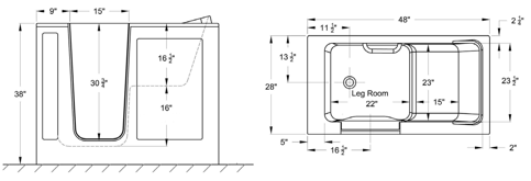 Our walk-in-baths are constructed of the highest grade fiberglass composites for beauty and durability. They come with a stainless steel frame for long lasting strength and adjustable feet for easy installation and leveling.